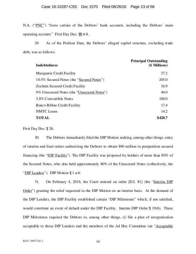 In Re: Case No. 16-10287(CSS) September 2, 2016